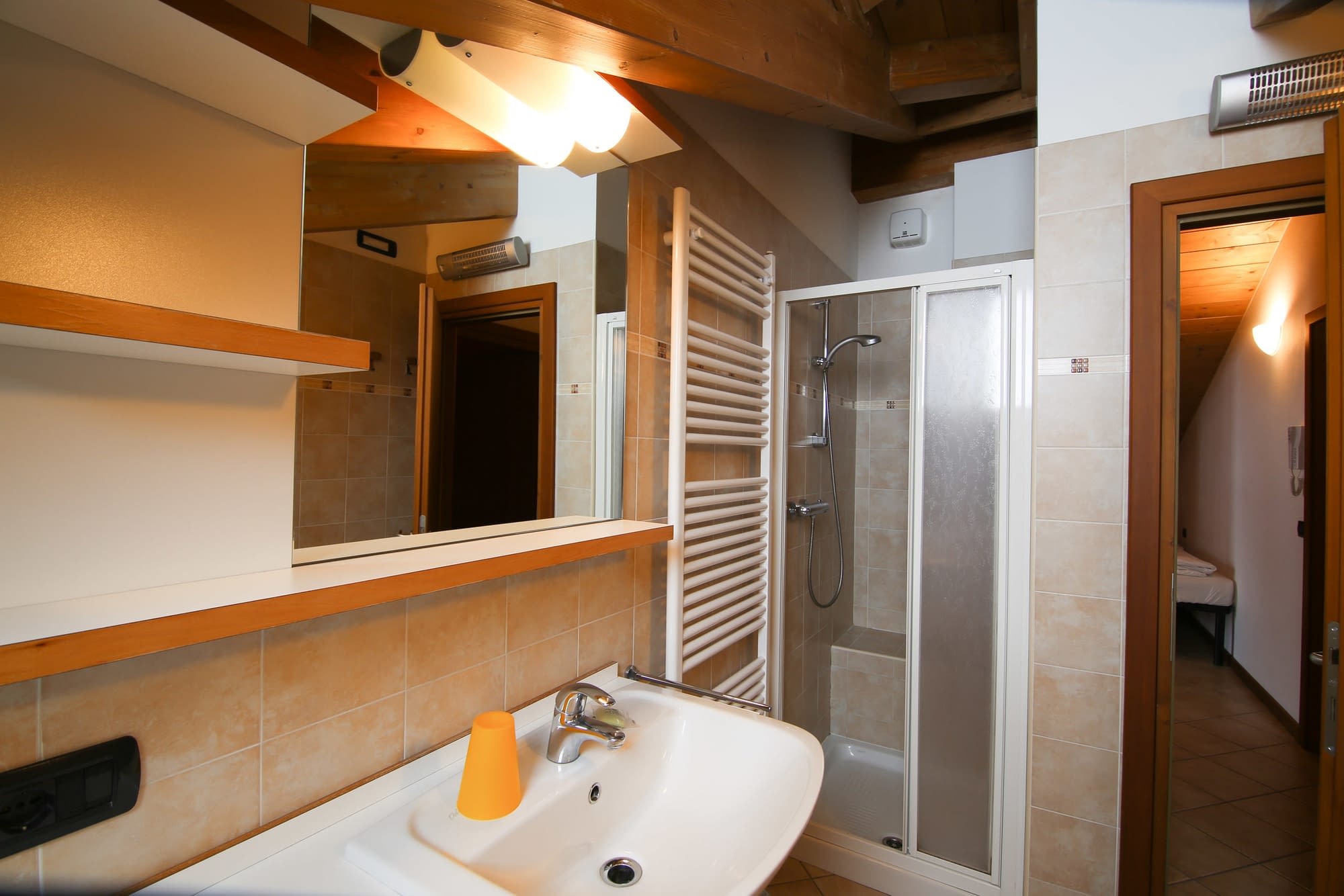 Con doccia, bidè, lavabo, scalda-salviette e phon